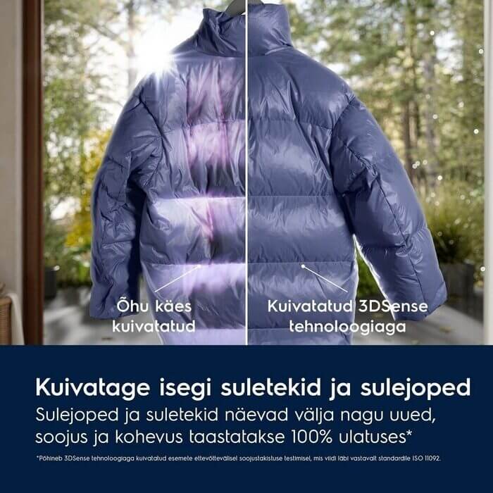 3DSense Technology, meie ainulaadne tehnoloogia, skannib rõivaste niiskust täpseks ja täielikuks kuivatamiseks. Isegi kõige paksemad rõivad, nagu suletekid ja sulejoped kuivavad ühtlaselt ning jäävad kohevaks ja säilitavad soojapidavuse.