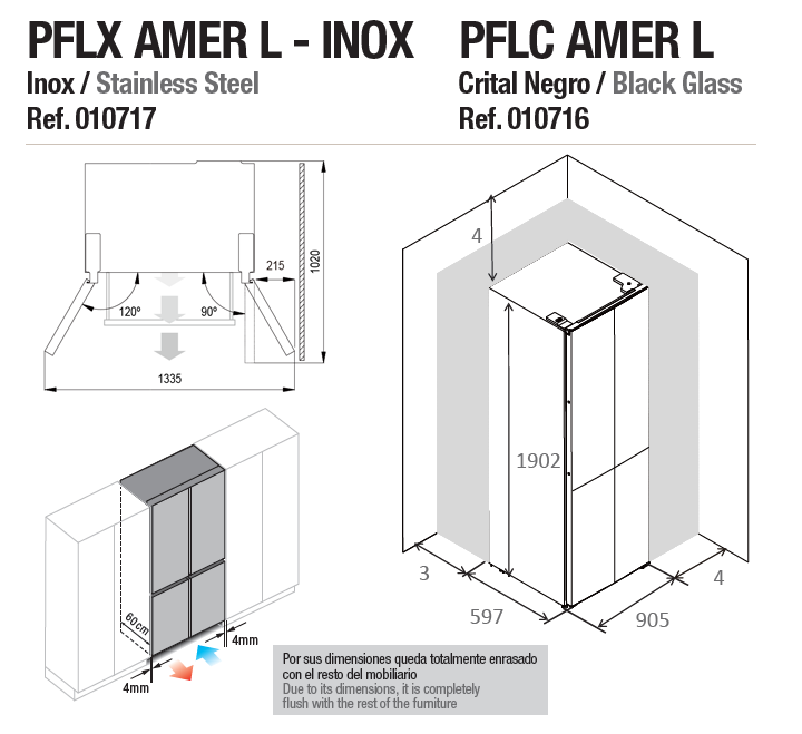 Tänu oma mõõtmetele sobitub PFLC AMER L musta klaasviimistlusega Ameerika külmik täpselt mööbliga ühele joonele ning on varustatud alumise ventilatsiooniga, mis tagab tõhusa soojuse ärajuhtimise.
