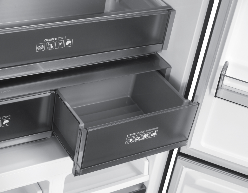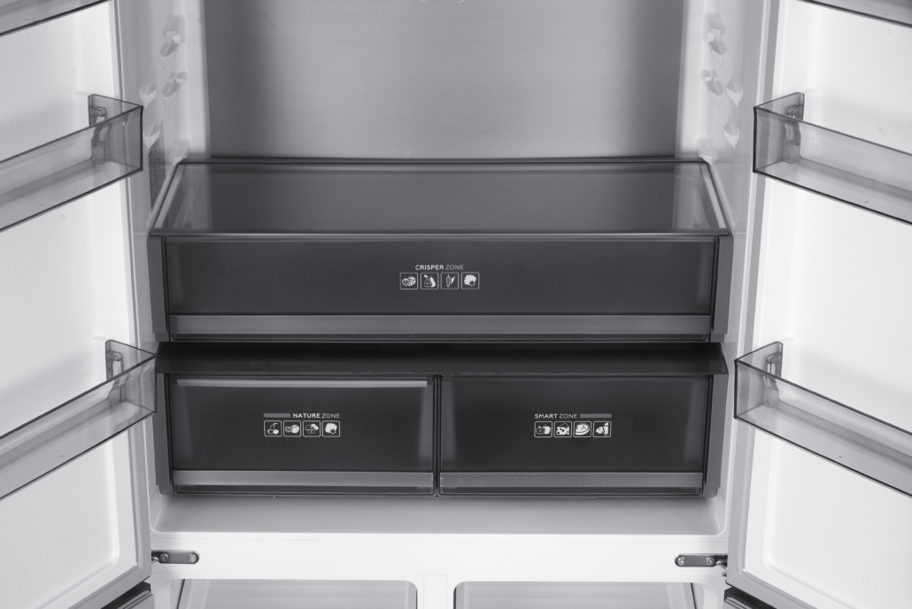 Crisper Zone hoiab puu- ja köögiviljad värskena, vältides nende omavahelist kokkupuudet.