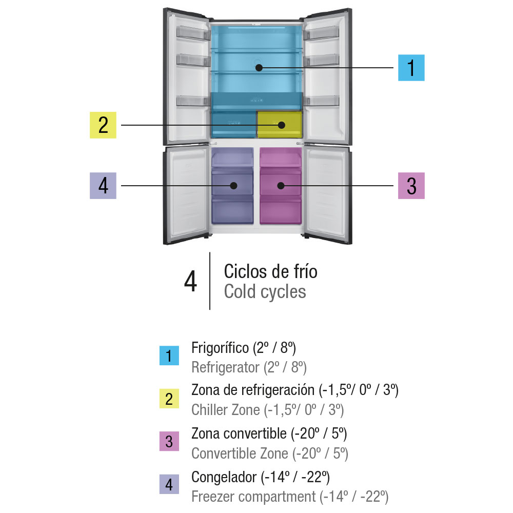 No Frost jahutussüsteem tagab ühtlase temperatuuri ning välistab jää tekke. Mitmed temperatuuritsoonid võimaldavad toiduaineid säilitada täpselt neile sobivates tingimustes – olgu selleks värske toit, jahutatud joogid või sügavkülmutamine.