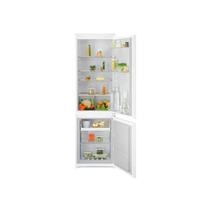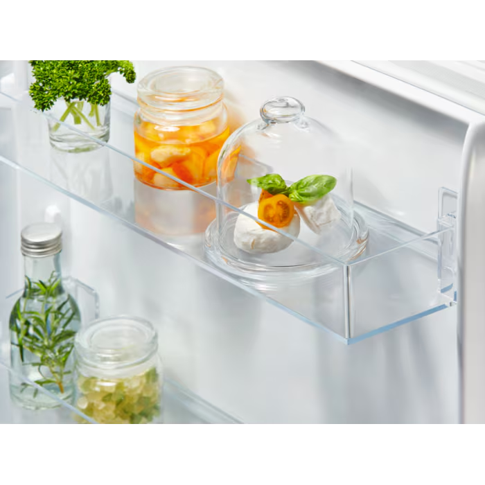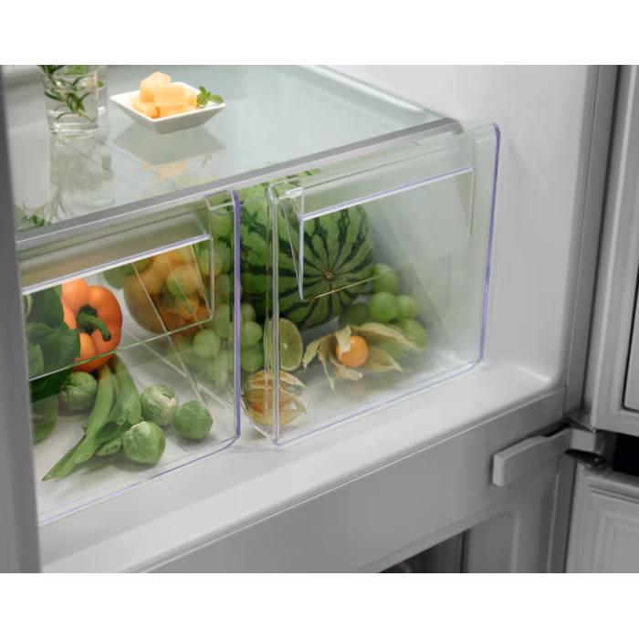 Tänu siinidega uksekinnitusele sobib see mudel hästi integreeritud köögimööblisse. Läbimõeldud siselahendus koos külmiku ja sügavkülma praktiliste riiulite ning läbipaistvate sahtlitega aitab toiduaineid mugavalt ja loogiliselt paigutada.
