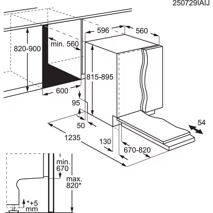 • Integreerimismõõdud: 820–900 x 600 x 560 mm