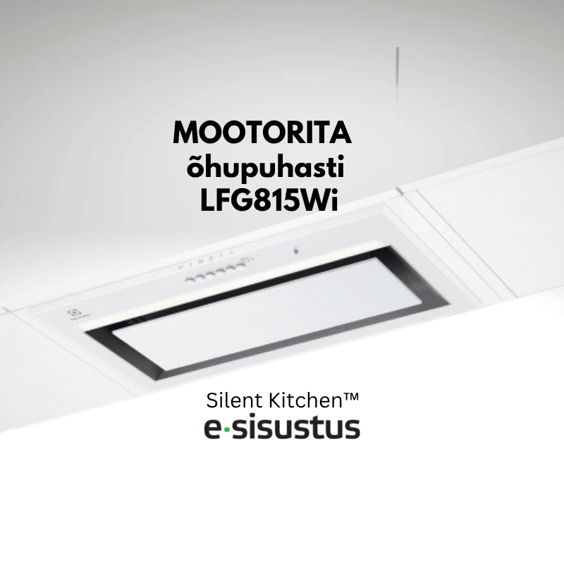NB! Ainult E-sisustus pakub tasuta konsultatsiooni välimootorite osas, et sinu köök oleks veelgi vaiksem ja tõhusam.electrolux lfg815k, lfg815k õhupuhasti, lfg815k hind, autosense õhupuhasti, hob2hood õhupuhasti, integreeritav õhupuhasti 54 cm, vaikne õhupuhasti, õhupuhasti retsirkulatsioon, õhupuhasti led 3000k, e-sisustus, vilpe lahendused, välimootori valikud