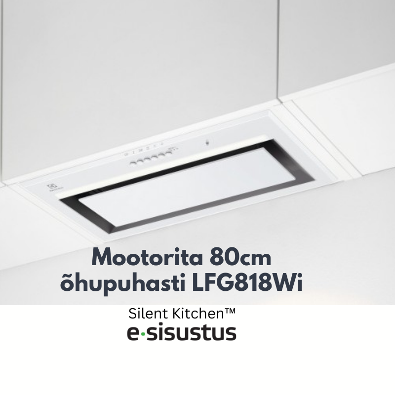 NB! Ainult E-sisustus pakub tasuta konsultatsiooni välimootorite osas, et sinu köök oleks veelgi vaiksem ja tõhusam.electrolux lfg818k, lfg815k õhupuhasti, lfg818k hind, autosense õhupuhasti, hob2hood õhupuhasti, integreeritav õhupuhasti 54 cm, vaikne õhupuhasti, õhupuhasti retsirkulatsioon, õhupuhasti led 3000k, e-sisustus, vilpe lahendused, välimootori valikud