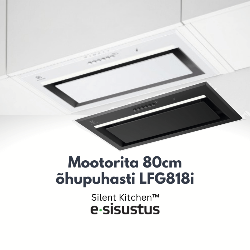 NB! Ainult E-sisustus pakub tasuta konsultatsiooni välimootorite osas, et sinu köök oleks veelgi vaiksem ja tõhusam.electrolux lfg818k, lfg815k õhupuhasti, lfg818k hind, autosense õhupuhasti, hob2hood õhupuhasti, integreeritav õhupuhasti 54 cm, vaikne õhupuhasti, õhupuhasti retsirkulatsioon, õhupuhasti led 3000k, e-sisustus, vilpe lahendused, välimootori valikud