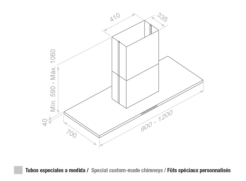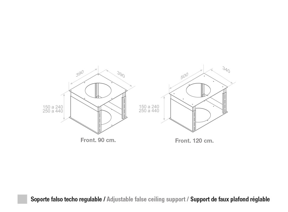 Õhupuhasti saadaval laiustes 90 cm ja 120 cm. Sügavus 70 cm.
