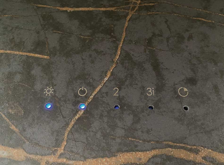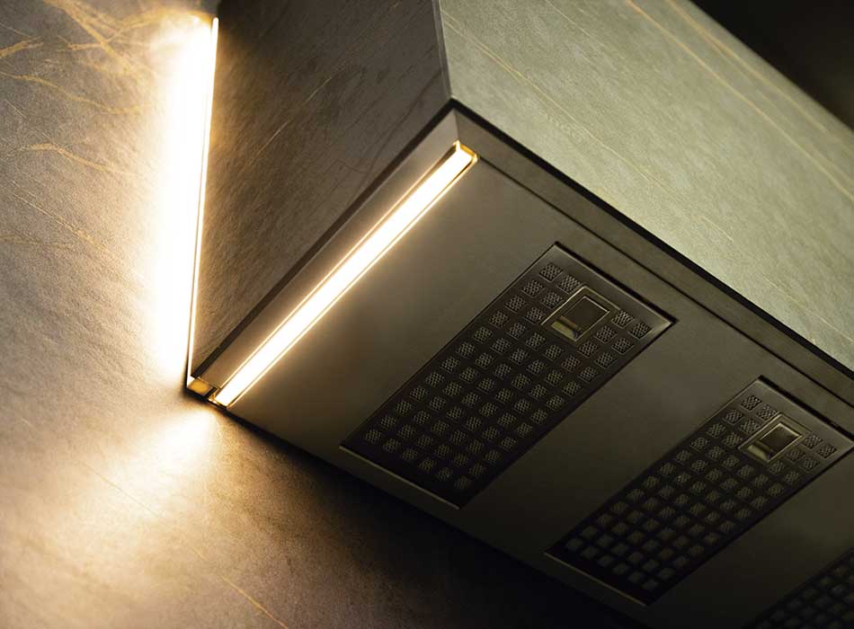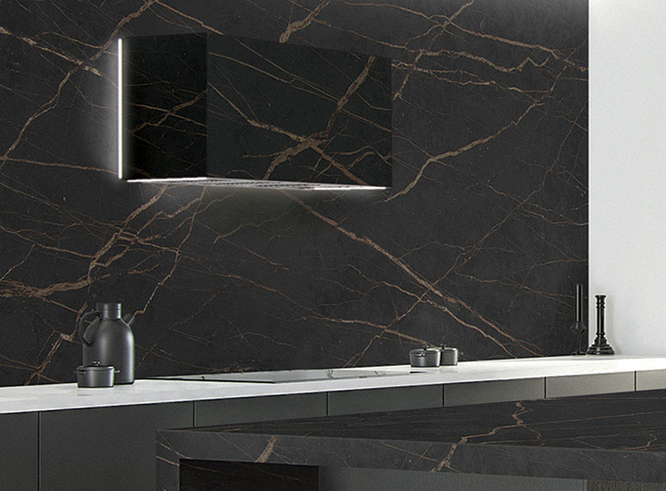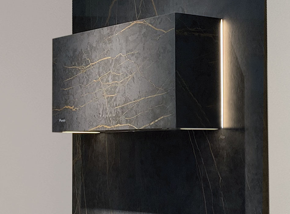 P‑746 õhupuhasti on saadaval laiustes 90 cm ja 120 cm, viimistletud elegantse DEKTON‑materjaliga — ultra‑õhuke 4 mm viimistlus, luksuslik ja vastupidav.