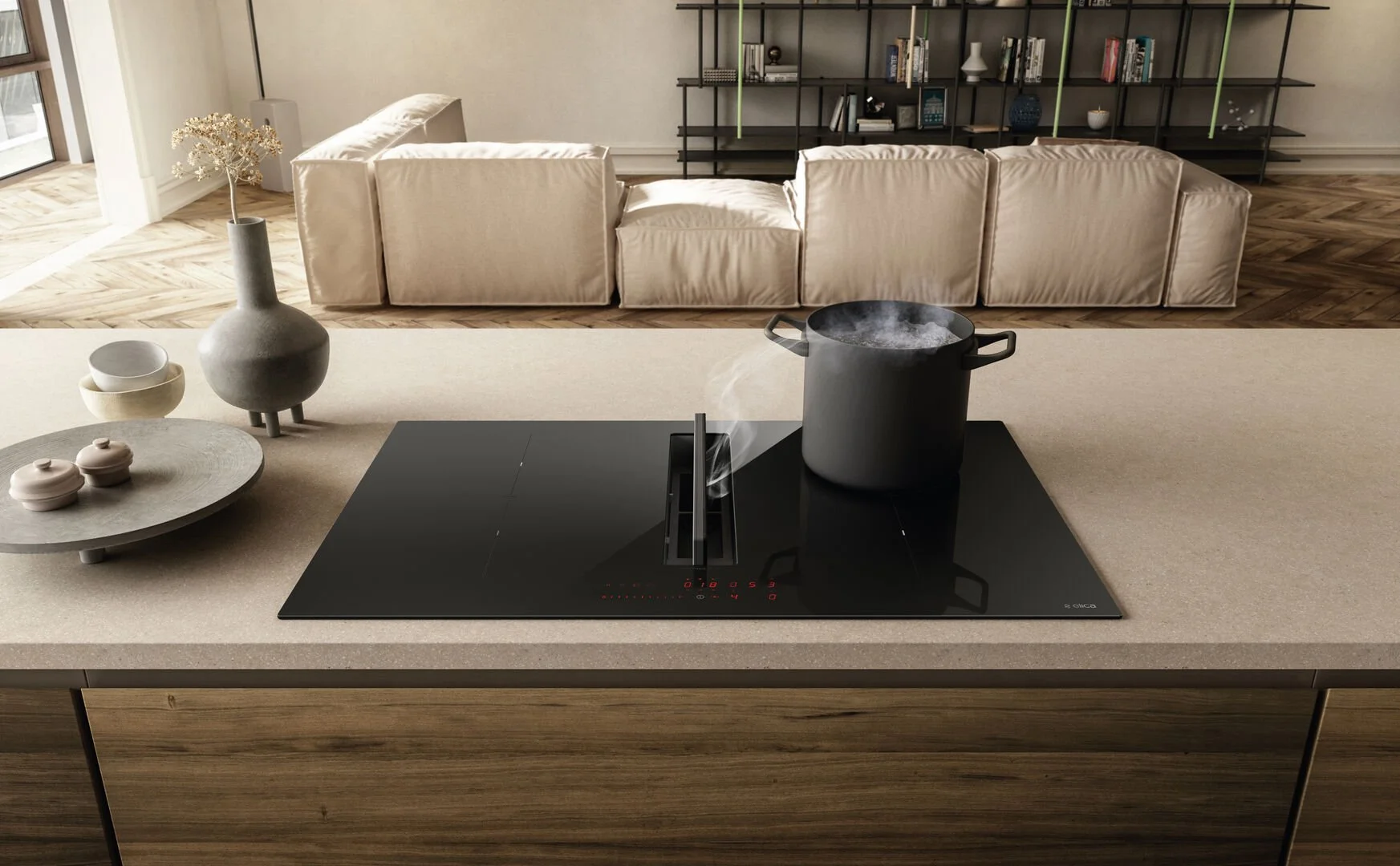 Integreeritud õhupuhasti eemaldab aurud ja lõhnad automaatselt. Autocapture-tehnoloogia reguleerib väljatõmbe võimsust vastavalt toiduvalmistamise intensiivsusele, aidates hoida mürataseme madalana ja energiakulu optimaalsena.