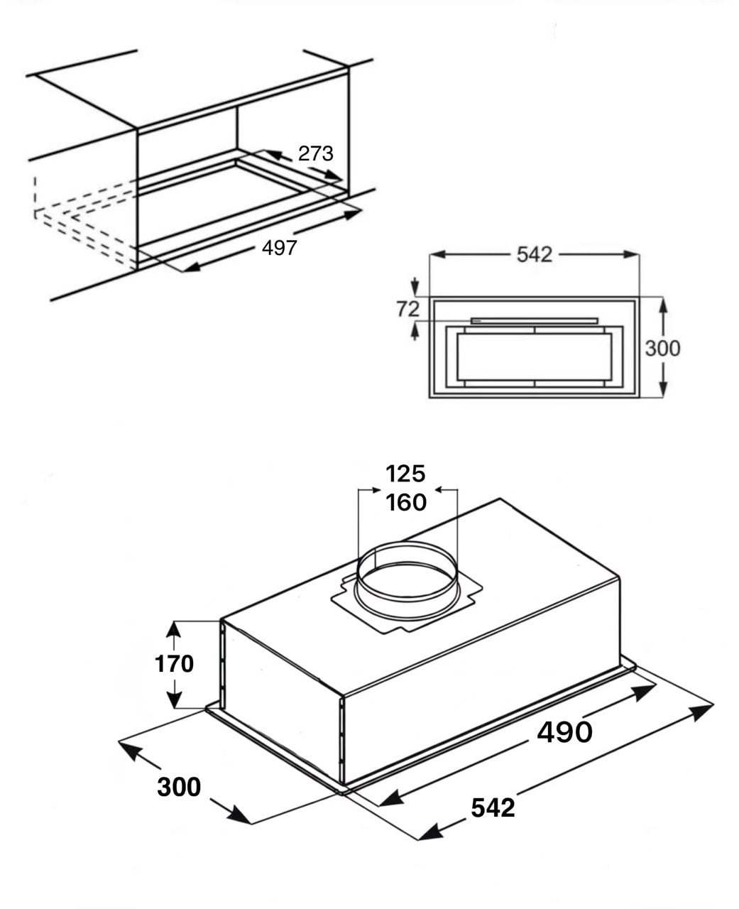 Köögikappi integreeritud diskreetne kubu eemaldab tõhusalt kõik köögilõhnad, jäädes samas pilgu eest varjatuks.-